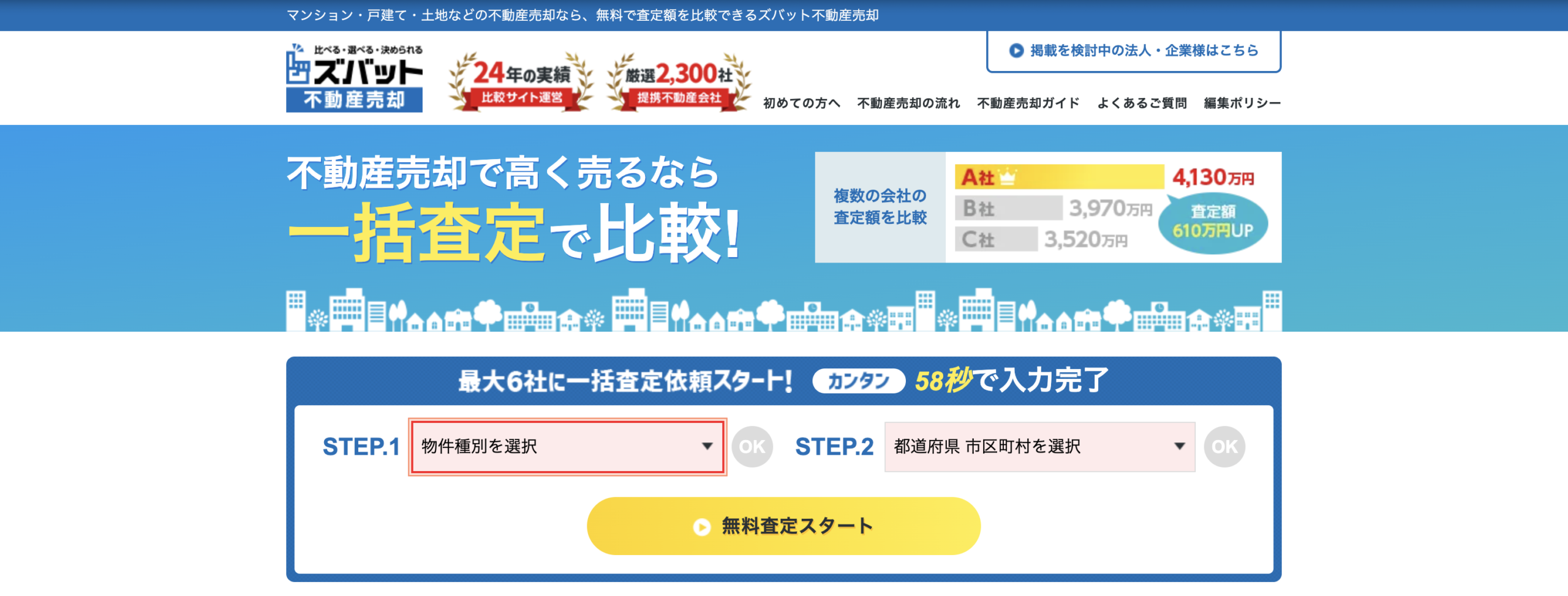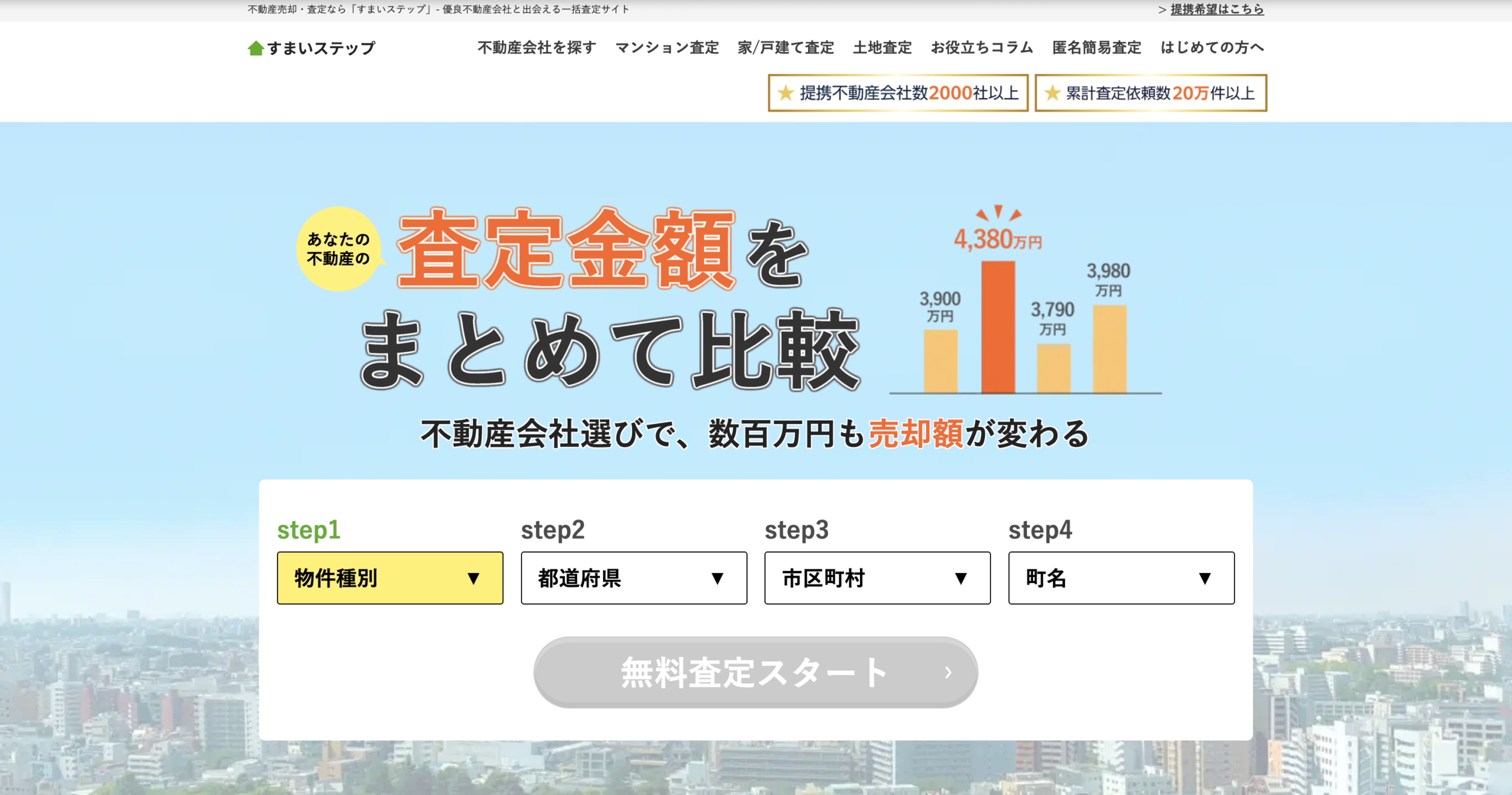 すまいステップは厳選された不動産会社のみと提携している一括査定サイトで、質の高いサービスを提供しています。