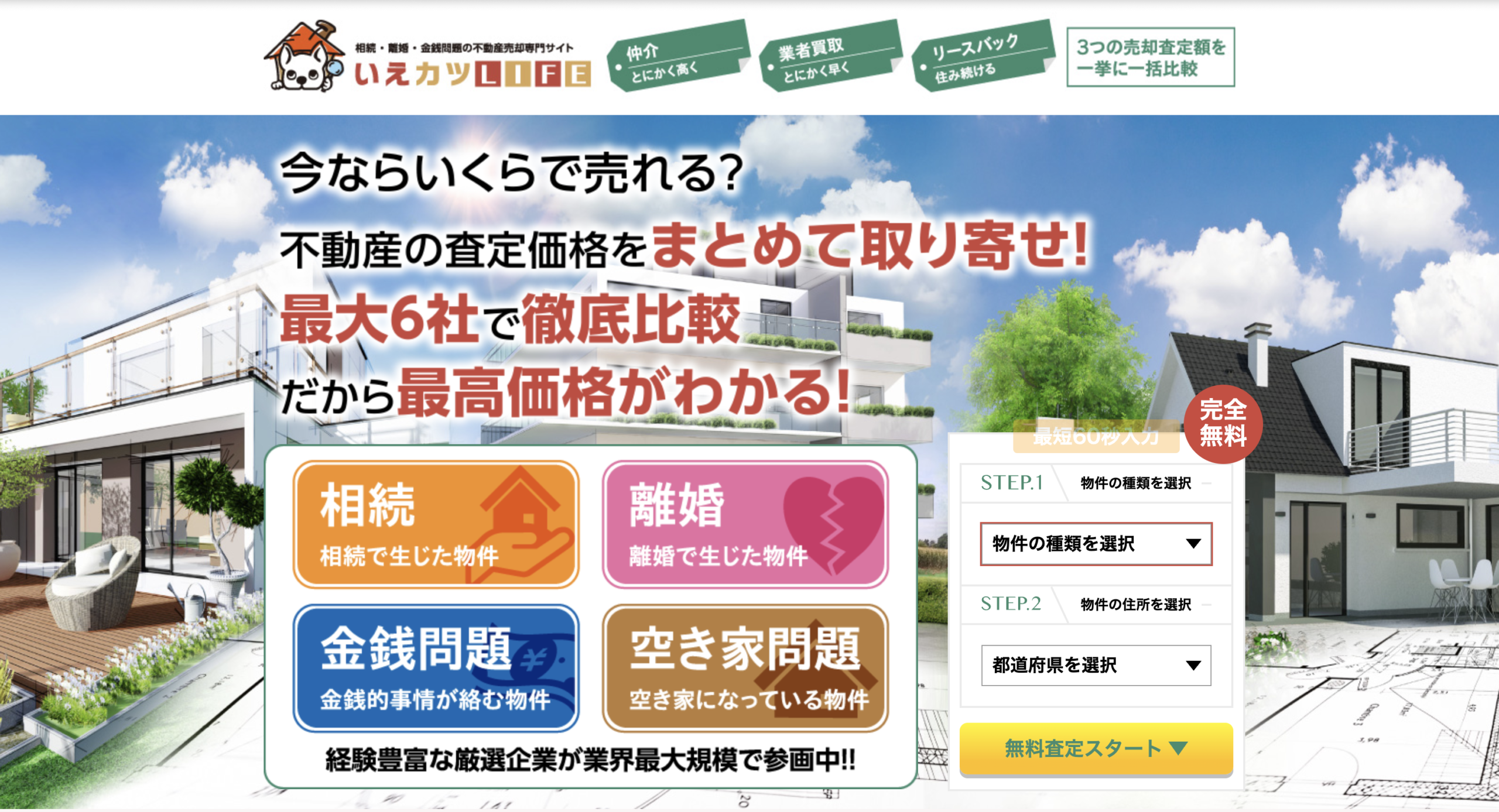 対応物件:マンション、一戸建て、土地、事業用物件 |