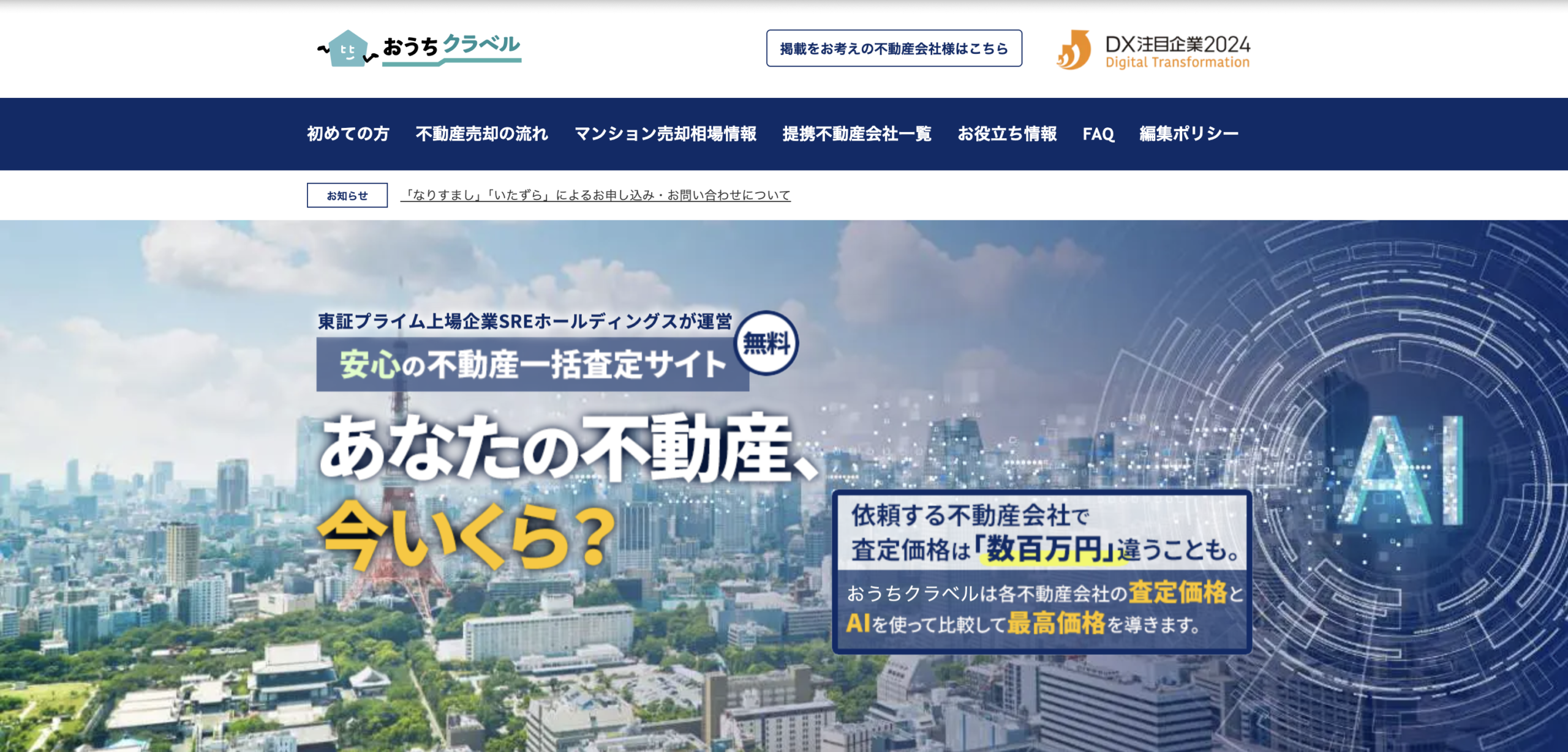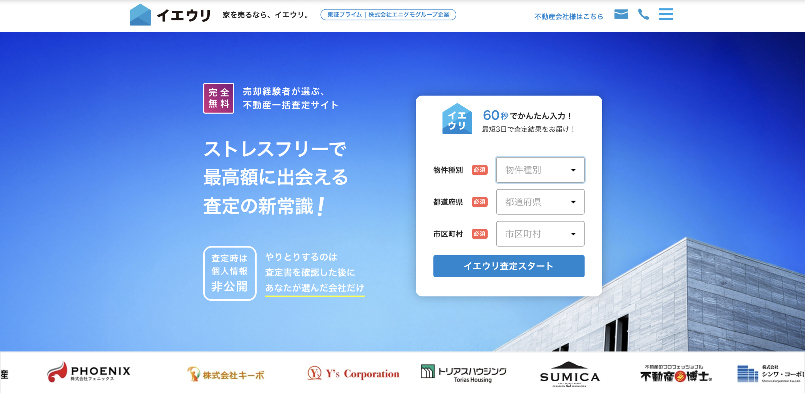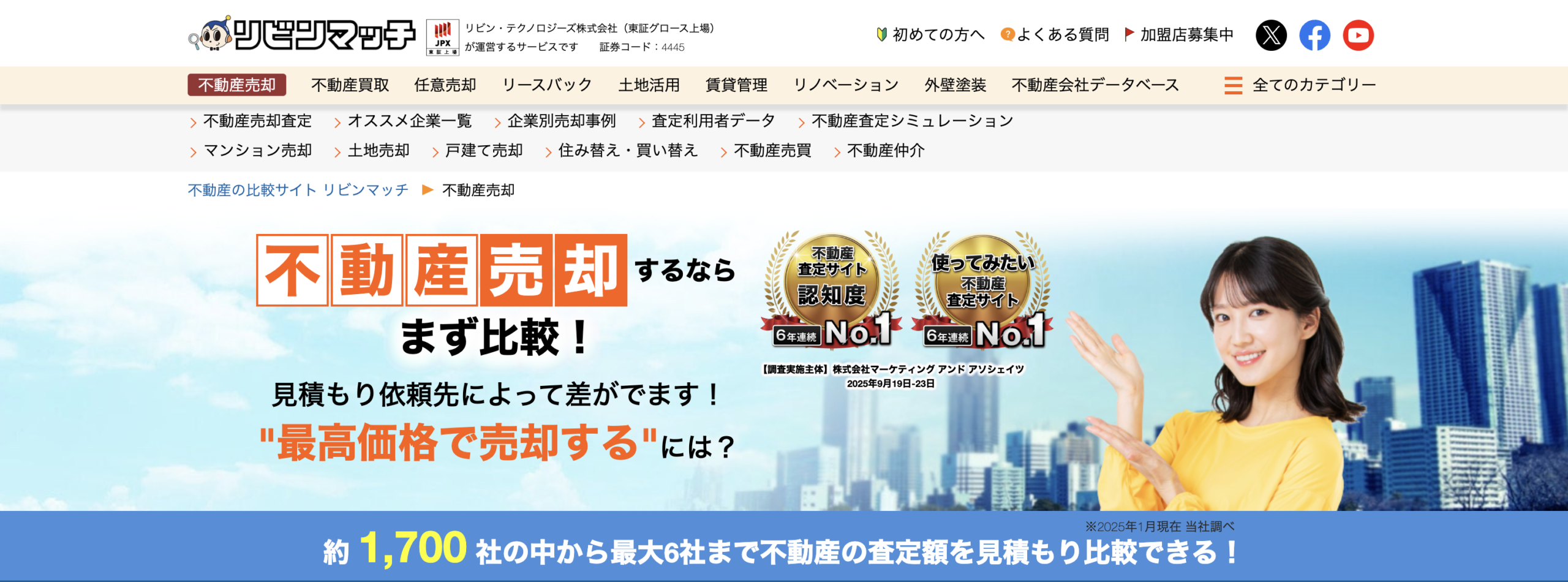 SUUMOは賃貸や売買の不動産情報サイトとして高い知名度を誇り、その信頼性を背景にした一括査定サービスを展開しています。