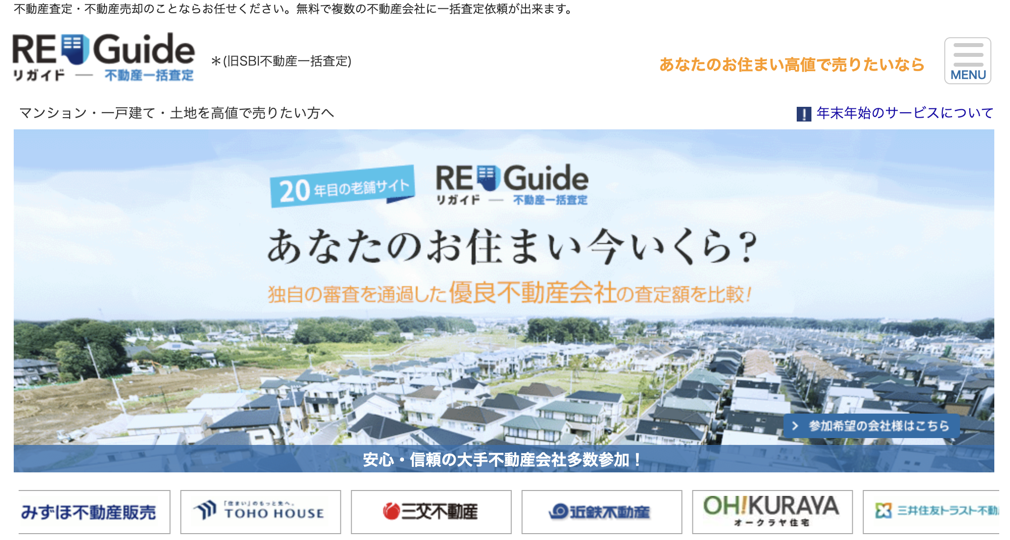 REGuideは2006年から運営されている一括査定サイトで、投資用物件の査定にも強いのが特徴です。